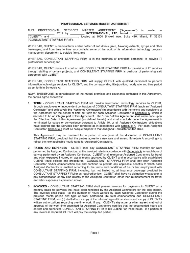 Master Service Agreement Template Staffing